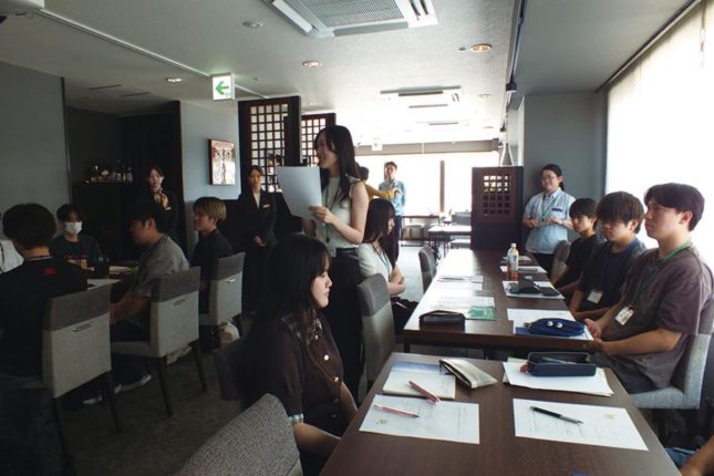 尾道国際ホテル(山陽工業㈱)では企業紹介ののち、新人社員から志望動機や職務内容を聞き、旅行プランを立てるワークショップを行った。学生たちは観光業界の実務に触れながら、実践的な企画力を養った。参加学生からは「自分と同じ年の新入社員の話がとても参考になった」との声が寄せられた。